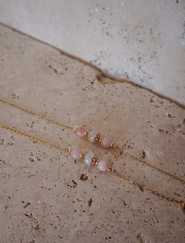 • Quartz rose, doux et lumineux, qui apporte une note de tendresse et de délicatesse.