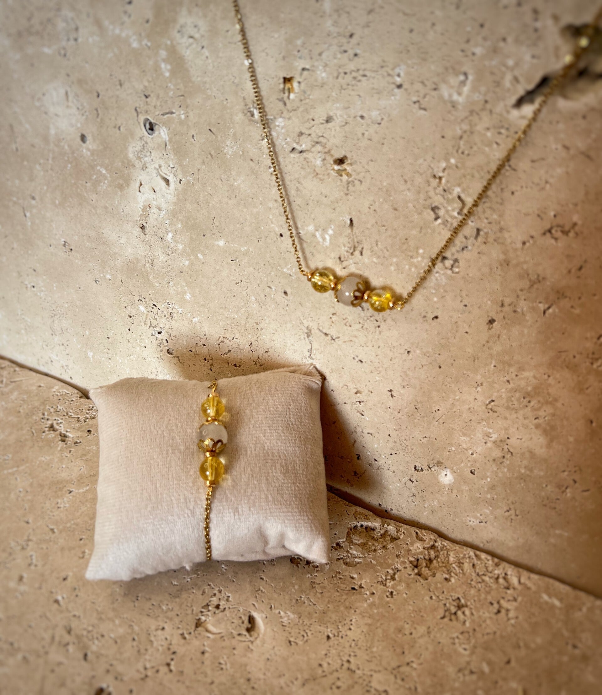 • Citrine jaune, éclatante et chaleureuse, qui illumine le bijou d’une lumière solaire.