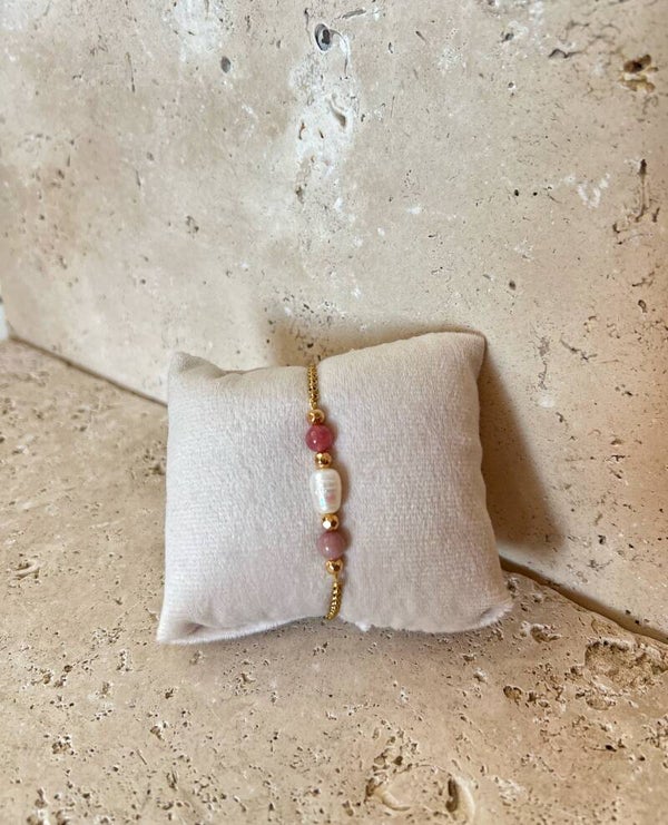 Le bracelet Beryl Rose est fait en pierre de soleil et perle d'eau douce