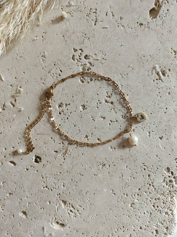 Le bracelet LOVELY séduit par son design délicat et féminin : monté sur une chaîne scintillante qui capte la lumière à chaque mouvement, il est agrémenté d’un pendentif en perle d’eau douce et d’un petit cœur étincelant en zirconium.