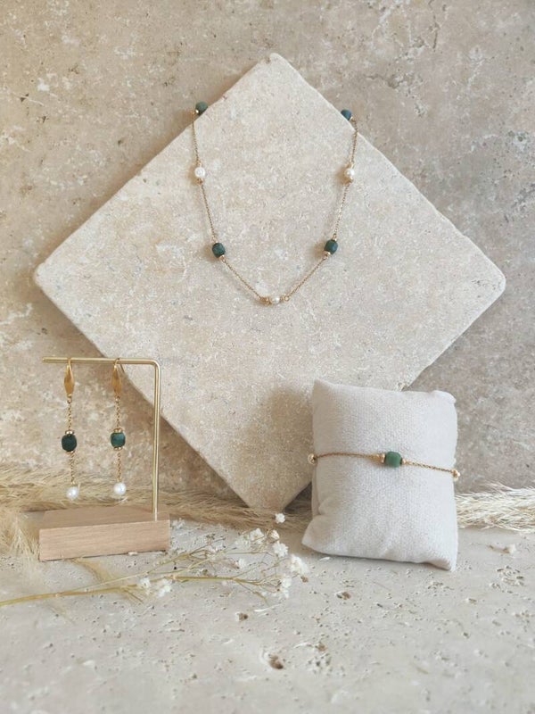 Le bracelet INA séduit par son harmonie naturelle et son élégance subtile. Il met en valeur un délicat assemblage de pierres naturelles qui apportent douceur, lumière et caractère au poignet.