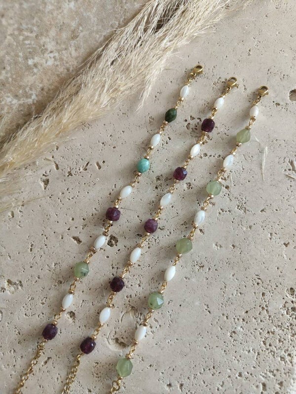 - Nacre & aventurine : une version douce et lumineuse, idéale pour un style frais et naturel.